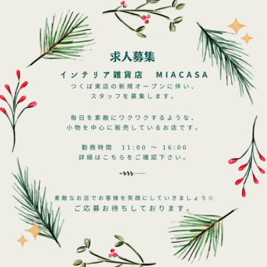 Mia Casa新店舗OPENに伴うスタッフ募集